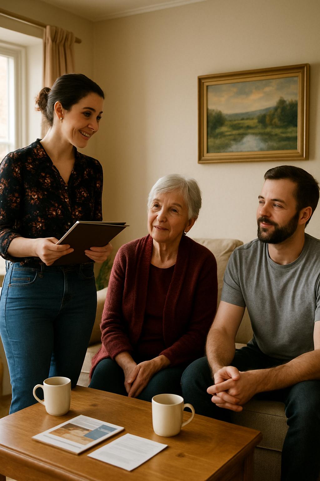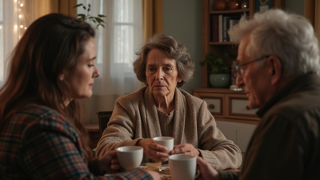 Vor dem Wohnhaus angekommen, parkte sie, nahm die Mappe an sich und stieg die fünf Etagen hinauf. Das Schloss klickte, als sie die Tür öffnete. Aus dem Wohnzimmer drangen Stimmen – die ihres Mannes Matthias König und die seiner Mutter Helga Reinhardt. Katharina zog die Schuhe aus, hängte ihre Jacke auf und ging in den Wohnbereich.