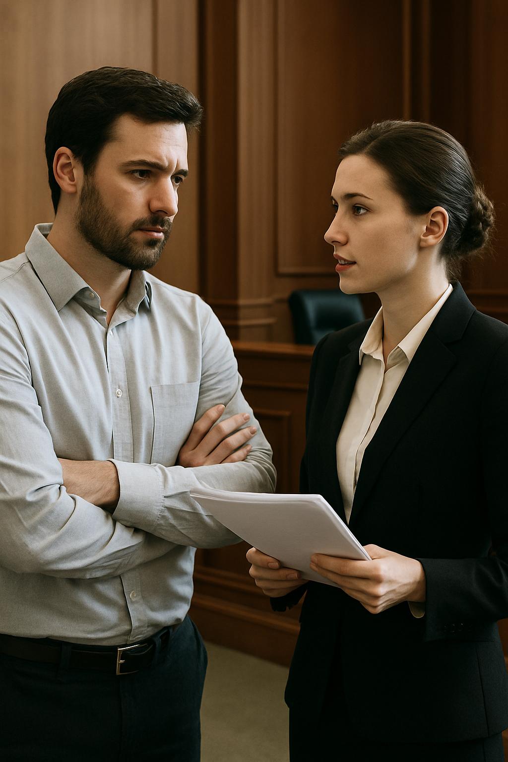 Das Gerichtsgebäude empfing sie mit leeren, hallenden Fluren und dem typischen Geruch von Akten und Amtsstuben. Vor der Tür zum Sitzungssaal wartete bereits Markus’ Anwalt — ein schmaler Mann mit Brille, der einen ganzen Stapel Dokumente unter dem Arm trug.