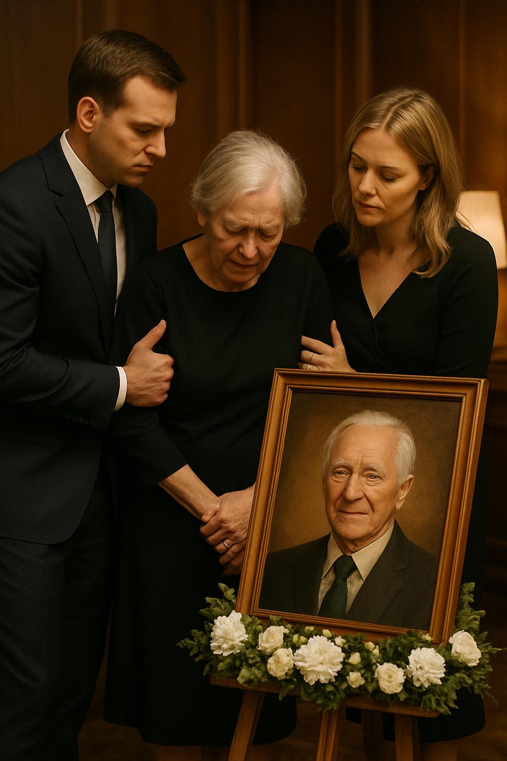Neben ihm befand sich eine blonde Frau in einem makellosen schwarzen Kleid, das wie maßgeschneidert an ihr saß. Sie tupfte sich mit einem Taschentuch an die Augen, doch in ihrem Blick lag kein echter Schmerz. Es hatte etwas Einstudiertes, als spiele sie eine Rolle, weil man es bei einer Beerdigung eben so erwartet.