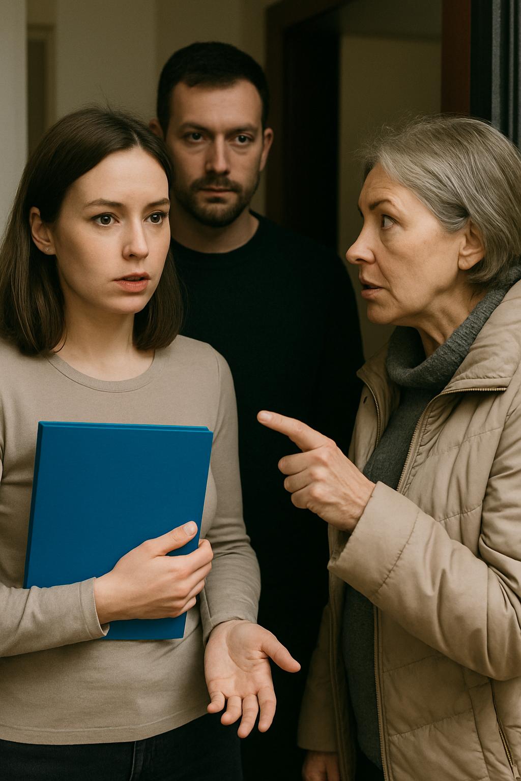 Doch die Ruhe hielt keine zehn Sekunden. Die Wohnungstür wurde mit einem Ruck aufgestoßen. Ihr Mann stand im Flur, die Kiefer angespannt, unter dem Arm eine dicke, blaue Mappe.
