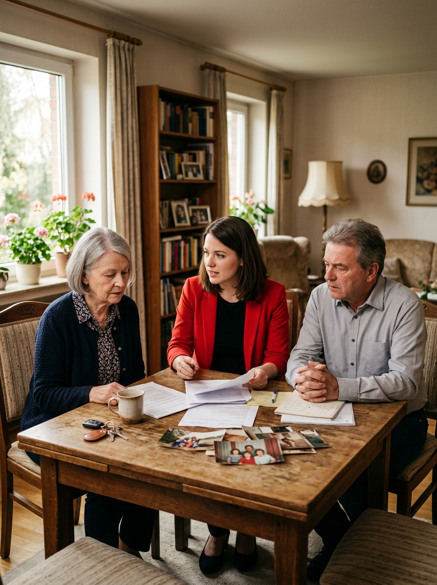 Ein halbes Jahr verging mit Formularen, Terminen und Wartezimmern. Die Notarin, eine Frau mit müden Augen und sachlicher Stimme, erklärte geduldig jeden Schritt: Antrag einreichen, Unterlagen beschaffen, Gebühren zahlen, Fristen abwarten. Mila und Jakob erschienen gemeinsam, saßen schweigend nebeneinander und unterschrieben dort, wo man es ihnen zeigte. Zwischen ihnen herrschte kein offener Streit, aber auch keine besondere Nähe. Sie waren Geschwister – im selben Haus aufgewachsen, doch längst in unterschiedlichen Welten angekommen.
