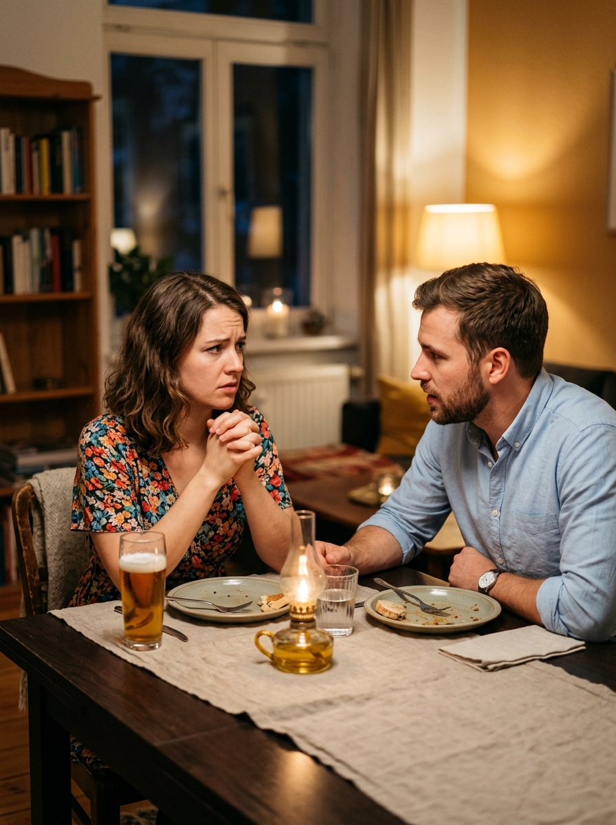 „Was?“ Julia Walter hob den Blick von ihrem Teller, auf dem der Kartoffelauflauf noch dampfte, den sie nach einem langen Arbeitstag zubereitet hatte. Sebastian Braun saß ihr gegenüber, locker in seinen Stuhl zurückgelehnt, und betrachtete sie mit jener ruhigen Selbstsicherheit, die immer dann in seinem Gesicht lag, wenn es um Zahlen, Planung und Struktur ging. In der kleinen Küche ihrer Zwei-Zimmer-Wohnung am Stadtrand von Berlin hing das warme Licht der alten Deckenlampe, und außer dem leisen Brummen des Kühlschranks war es still. In Julia regte sich etwas Unbestimmtes – keine Kränkung, eher ein leises Erstaunen, vermischt mit ihrer gewohnten Bereitschaft, ihm entgegenzukommen.