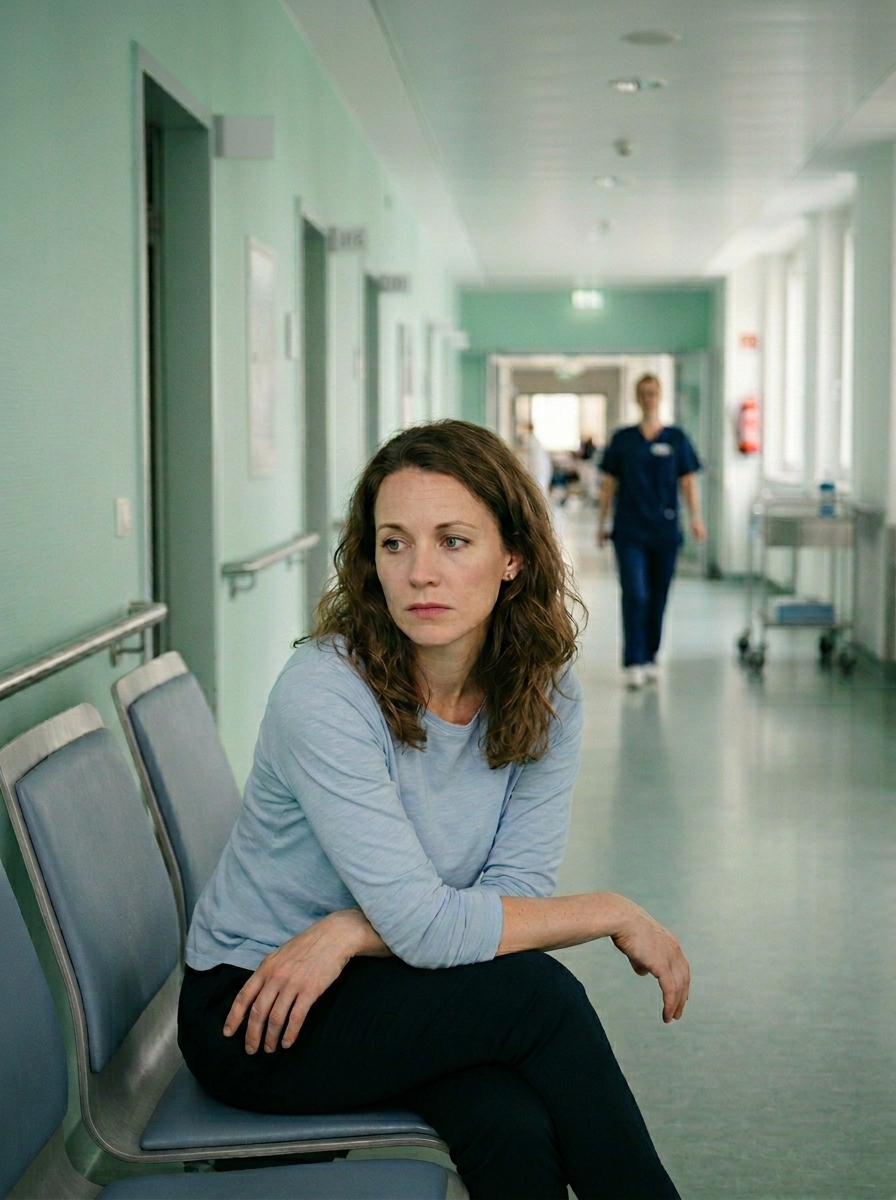 Um 23:14 vibrierte mein Handy in der Tasche meines Cardigans. Ich saß auf der harten Bank im Klinikflur, trank lauwarmen Tee aus einem Pappbecher und starrte auf die rissigen, halb abgeplatzten Fliesen gegenüber. Ohne nachzudenken zog ich das Telefon hervor – und erstarrte.