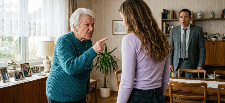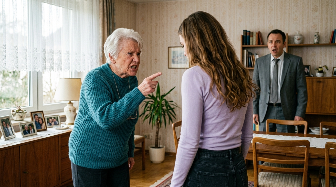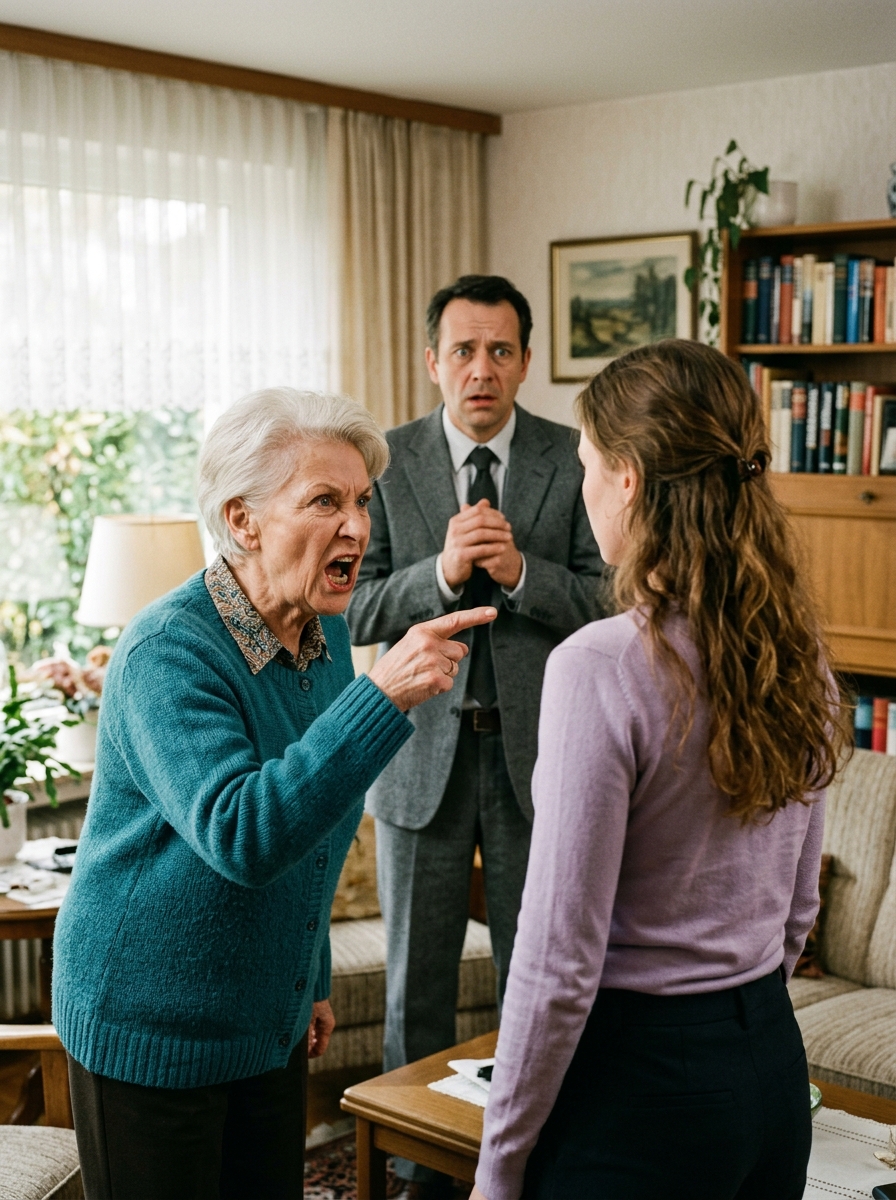 „Wag es ja nicht, auch nur einen Schritt aus diesem Zimmer zu setzen, du Unverschämte! Wenn ich dein Gesicht da draußen sehe, wirst du es bereuen!“, zischte die Schwiegermutter.